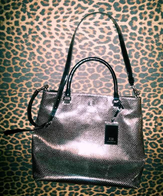 Toinen ihastumiseni, ja nimenomaan Karen Millen -merkin laukkuun, tapahtui tässä muutama päivä sitten. Sekin tapahtui aivan puun takaa. Uutta mallistoa oli ilmestynyt kaupan hyllyille. Ja ikään kuin en jo valmiiksi pitäisi eläinkuoseista, laukun hopeinen väri lumosi minut jo sellaisenaan. Mitäpä tämä nainen ei siis tekisi kuin ostaisi laukun, kaksi ihanuutta nimittäin yhdessä on jo melkein liikaa: käärmekuosi, hopeinen väri.